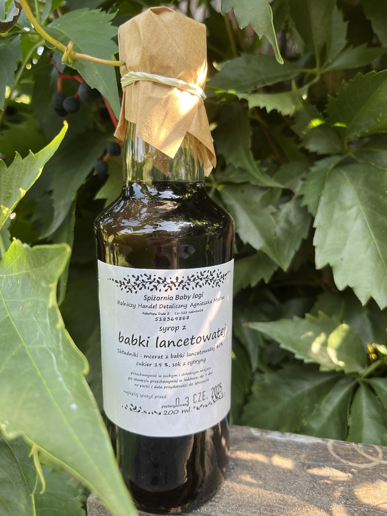 Skład: babka lancetowata, cukier, woda, sok z cytryny.